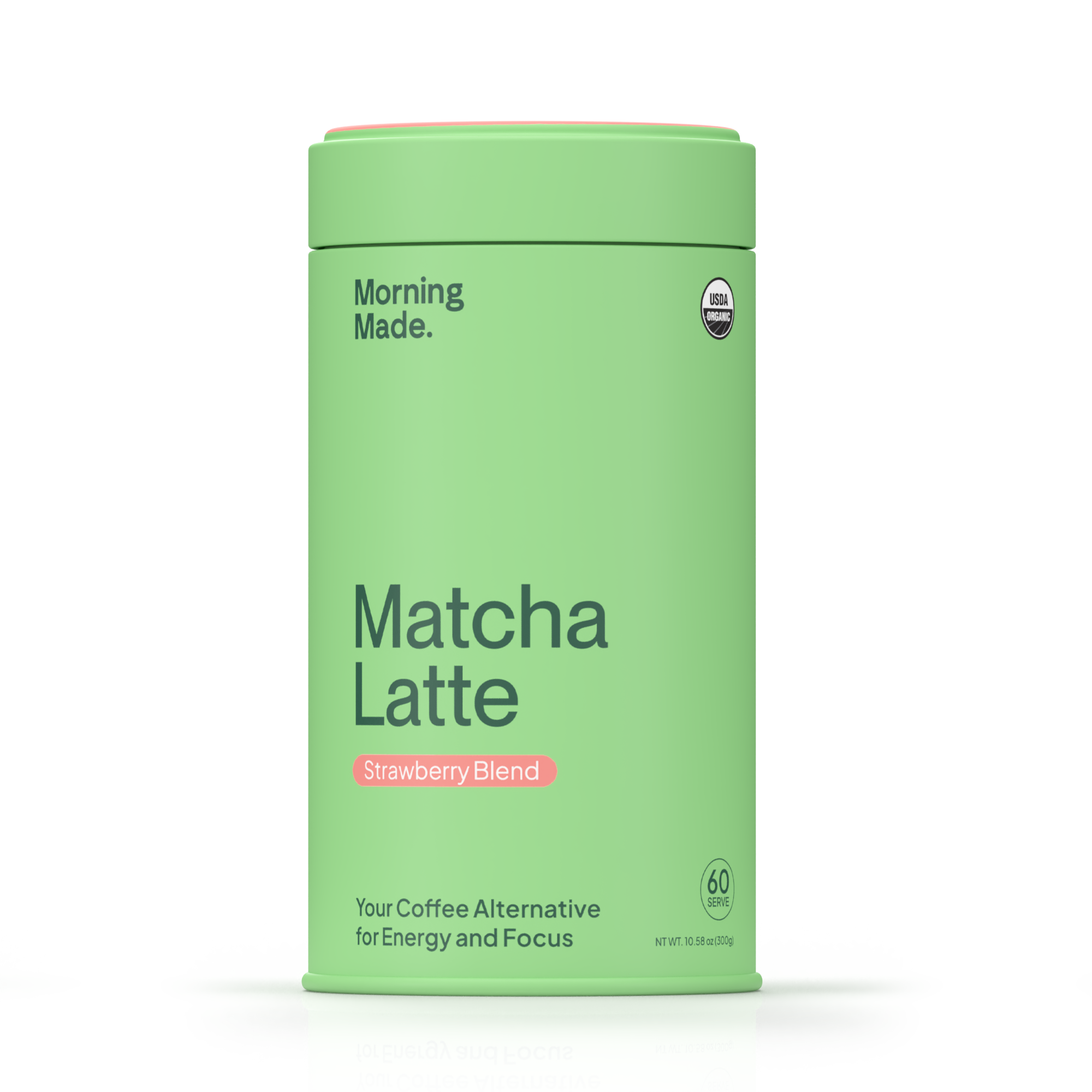 Morning Made's Strawberry Matcha Latte Powder is crafted with ceremonial grade matcha from Uji, Kyoto. Lightly sweetened with organic cane sugar and infused with strawberry, this blend contains the healthful benefits of matcha without compromising on taste. Sustainably and ethically sourced, each sip reflects Morning Made's commitment to quality.