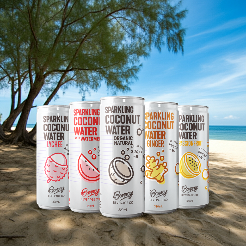 Bonsoy take organic coconut water, fruit juice ( for Lychee, Passionfruit, Ginger and Watermelon flavoured versions) , and add sparkling bubbles. No added sugar or flavour. That’s because Bonsoy use older coconuts that are sweet already.