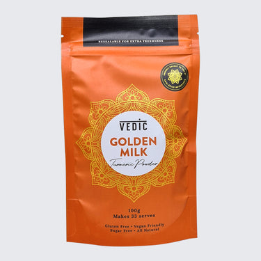 - Add 1/2 teaspoon of Vedic Golden Milk to your cup